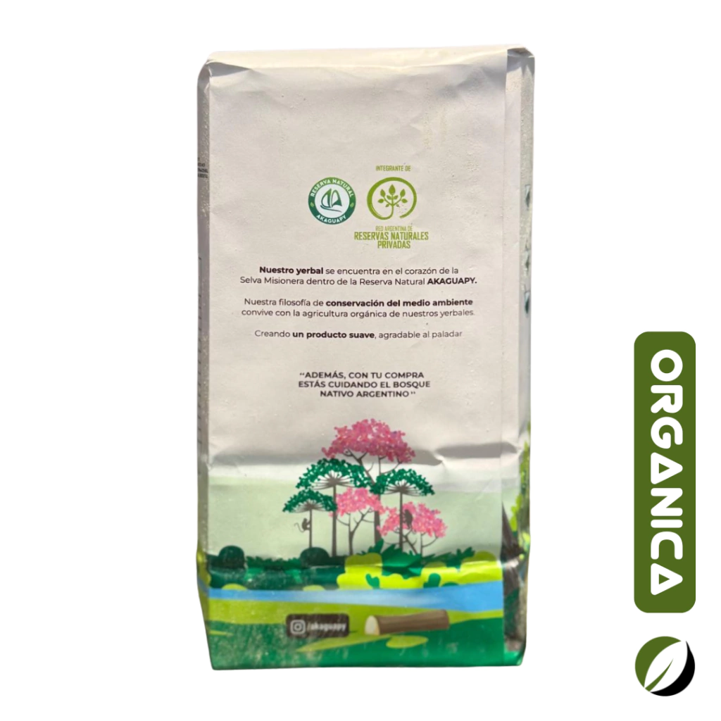 Esta yerba orgánica proviene del corazón de la Selva Misionera, dentro de la Reserva Natural Akaguapy. La producción se realiza bajo estrictas normas de agricultura orgánica, respetando la filosofía de conservación del medio ambiente que convive con el cuidado del bosque nativo argentino.